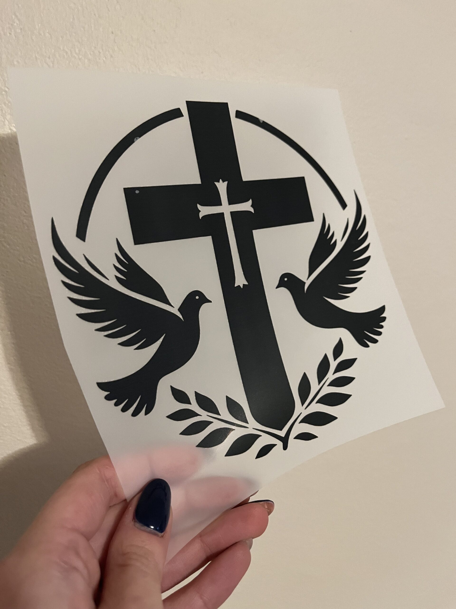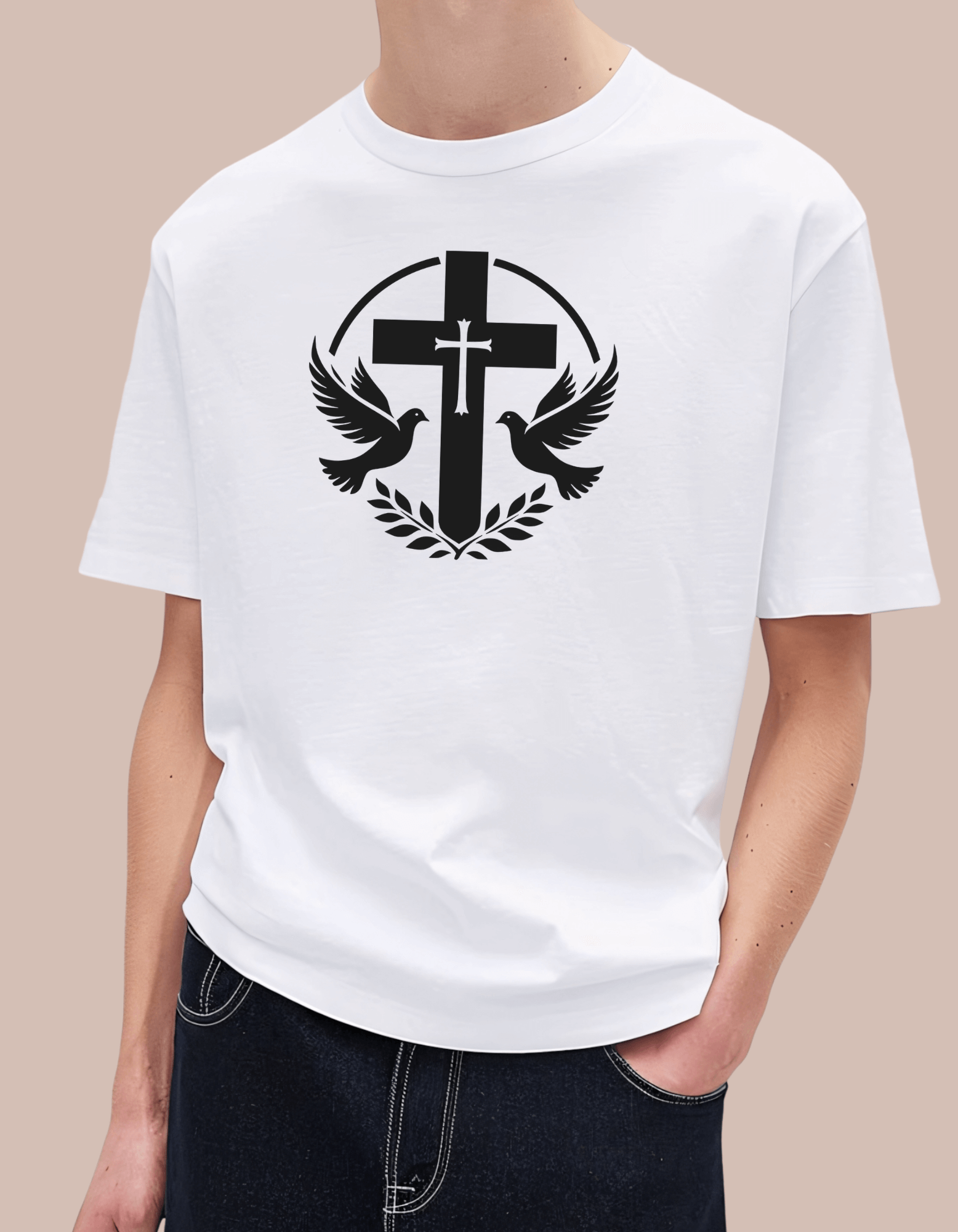 Naszywka termiczna z symbolem. Moda Cyrkularna i Zero Waste. Odnów stare ubrania zamiast kupować nowe. Ekologiczna prasowanka.Krzyż, Gołębica, Gałązka Oliwna